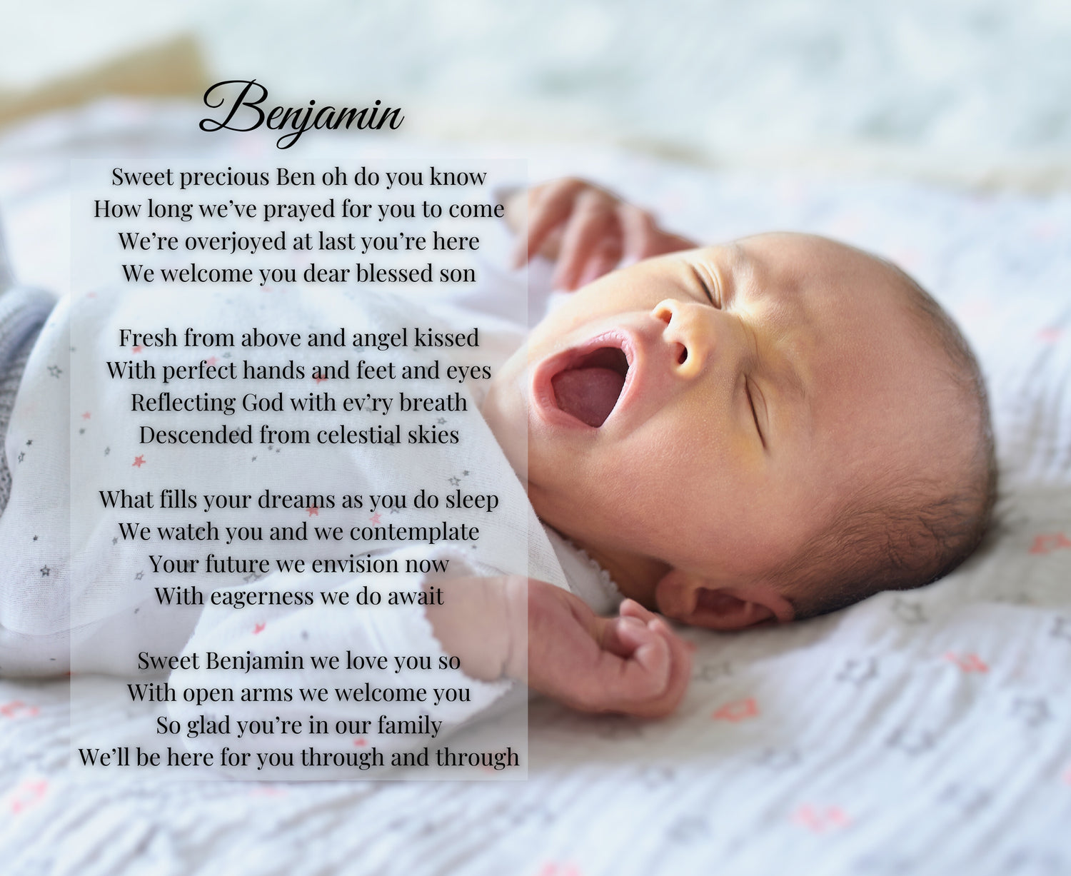 What special new infant can we help you celebrate? Whether you choose a poem, digital print, or canvas print, we will collaborate with you to create something special and treasured.