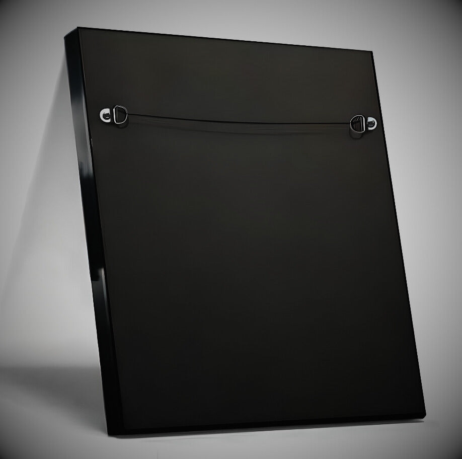 Your print will have a black archival backing and will come ready to hang without a frame. A wire hanger will be installed on the back approximately 2/3 of the way up from the bottom of your print.