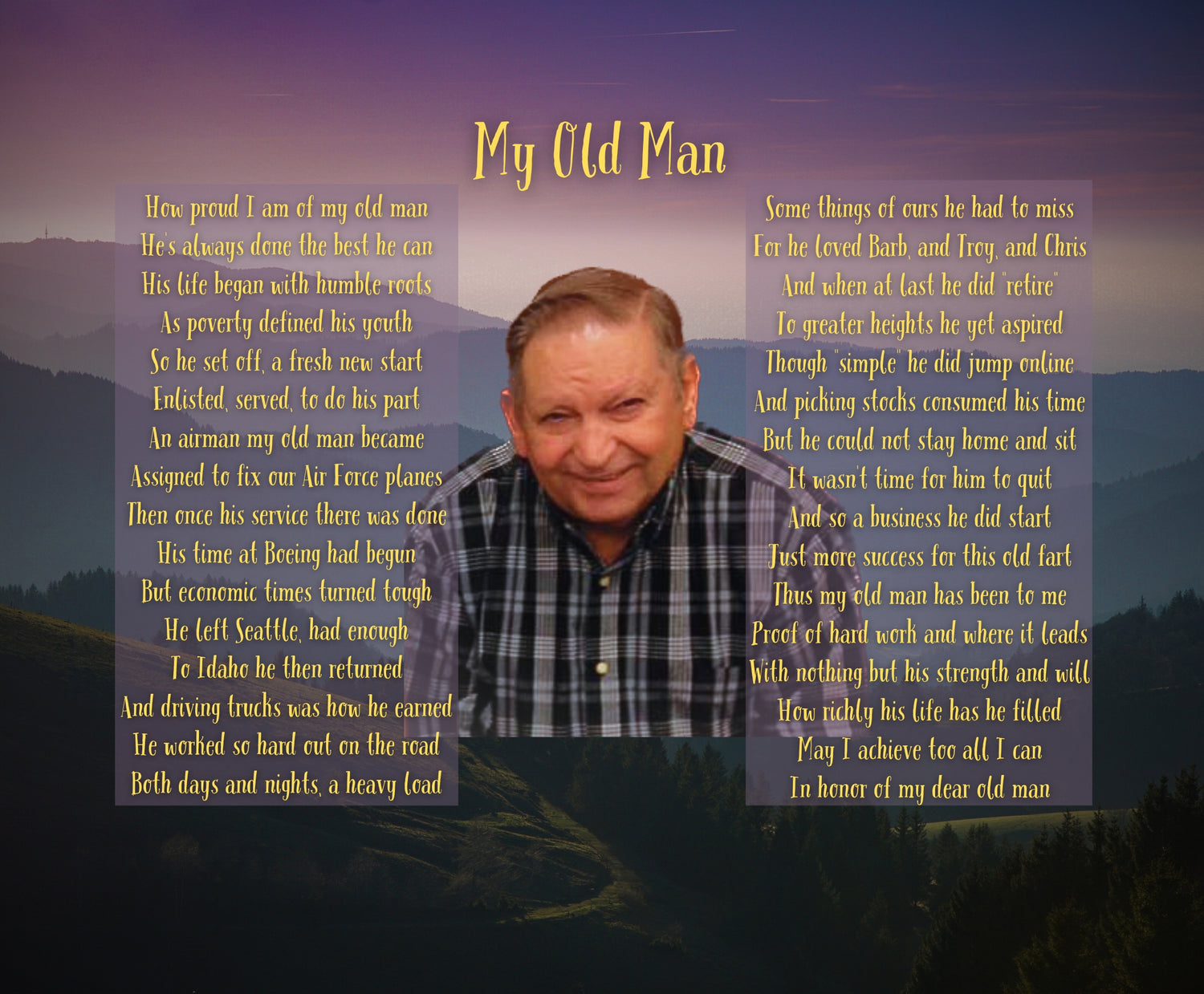 What does your father mean to you? In the poem pictured here, Troy Salisbury, the founder of Poetic Touches, wrote about his love for his father. Throughout Troy's life, his father has been a great example to him of always working hard and never refusing to sit down and grow old.
