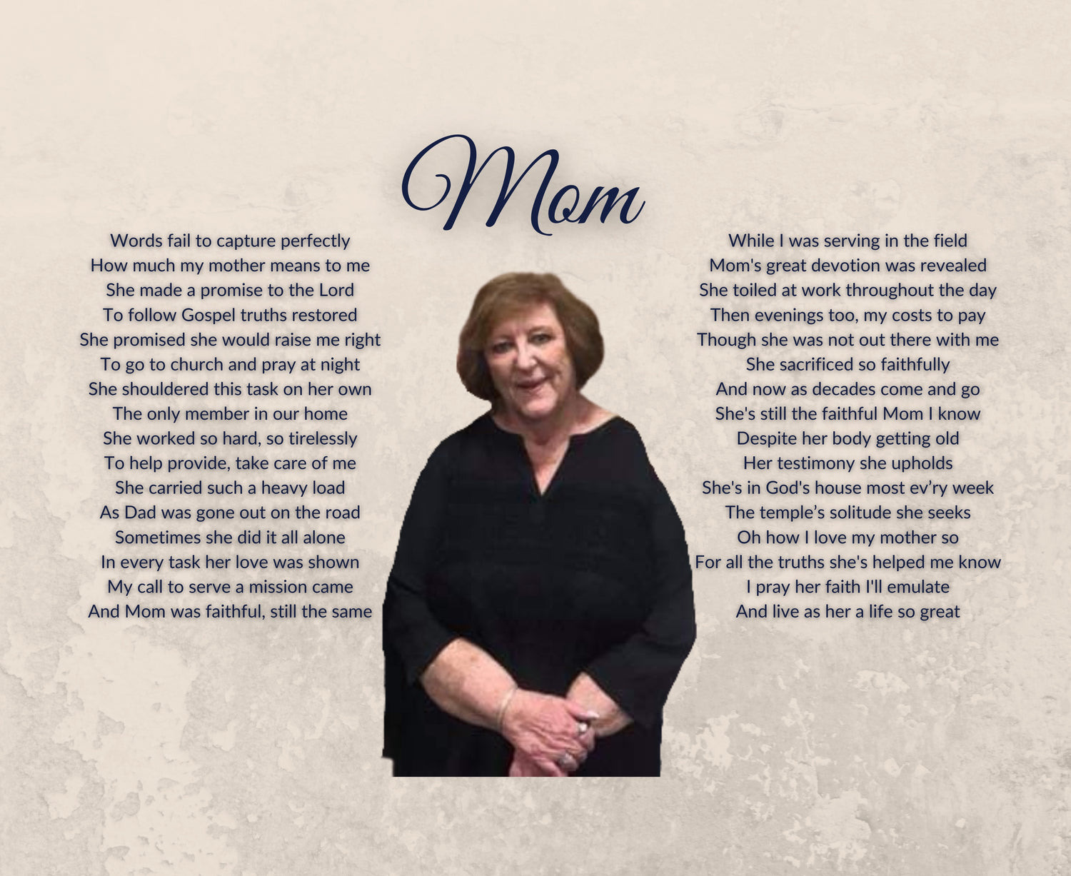 What mother can we help you honor and celebrate? Whether you choose a poem, digital print, or canvas print, we will collaborate with you to create something special and treasured.